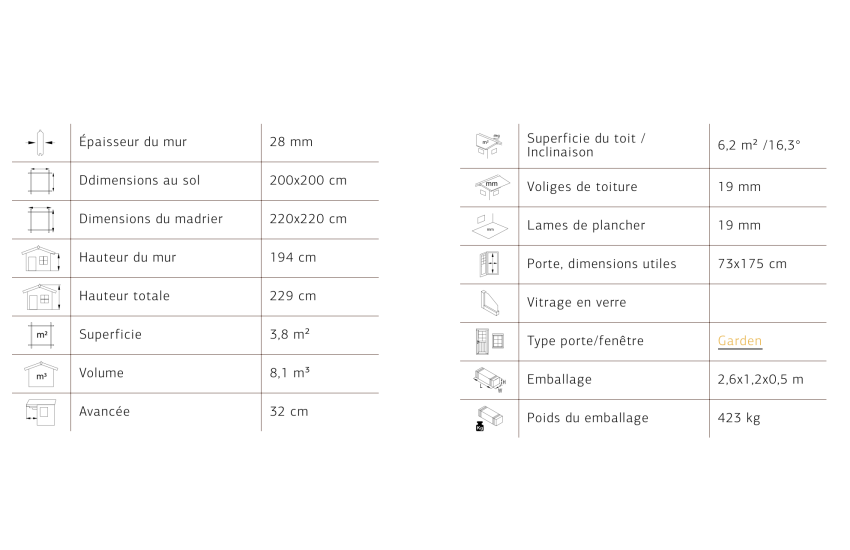 ABRI DE JARDIN VIVIAN 3,8m2